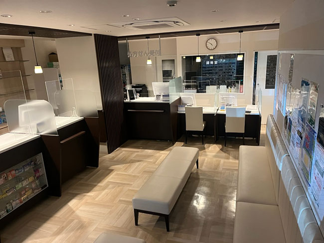 明るく清潔な薬局内で、笑顔で迎えるスタッフがお待ちしています。